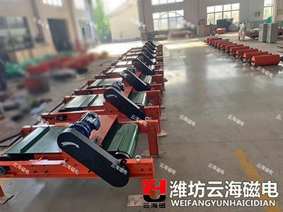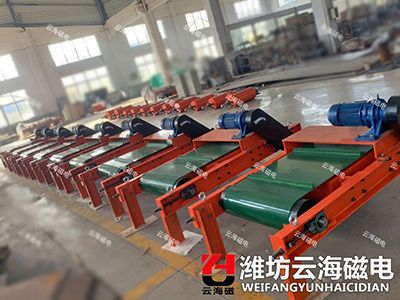 RCYD(C)系列永磁自卸式除鐵器是由高性能永磁磁芯、棄鐵皮帶、減速電機、框架、滾筒等部分組成,與各種輸送機配套使用。用于從非磁性物料中自動0.1-45 公斤重的鐵磁性物質。其內部磁路采用計算機模擬設計、完善的雙磁極結構,保障整機在惡劣環境中無故障長期運行。