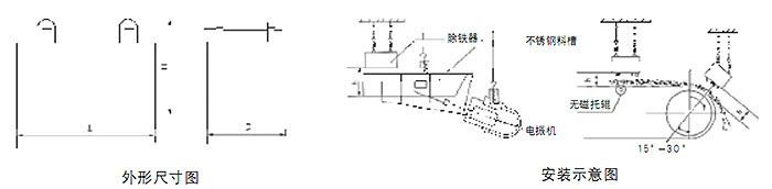 適用于皮帶輸送機、振動給料機、下料溜槽上的非磁性物料中除鐵。