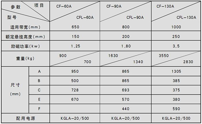 CF、CFL系列懸掛式電磁除鐵器,是國內(nèi)使用早、亦是目前使用量較多的除鐵設(shè)備,一直以操作方便,性能穩(wěn)定可靠、價錢合理,維修率低,深得用戶的信賴,全封閉的多工作磁極磁路結(jié)構(gòu),是惡劣工作環(huán)境中除鐵的常用設(shè)備。可與RCDB干式圓盤電磁除器通用。該系列產(chǎn)品由于采用計算機輔助設(shè)計優(yōu)化改進(jìn)了產(chǎn)品結(jié)構(gòu)。