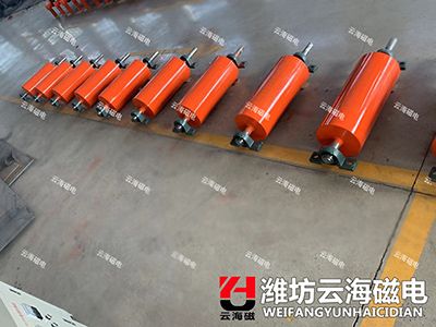 RCT(RCTG)系列永磁滾筒亦稱磁滑輪或干式大塊磁選機。其內部采用高性能硬磁材料組成復合磁系,具有磁場強度高、深度大、結構簡單、使用方便、不需維修、不消耗電力,常年使用不退磁等特點??捎糜谒?、磁選、礦山、鋼鐵、化工、耐火材料、垃圾處理等行業的選鐵。與DT-75型、AD-80型通用固定式皮帶輸送機配套使用代替主動輪,也可與專用皮帶輸送機制造配套。